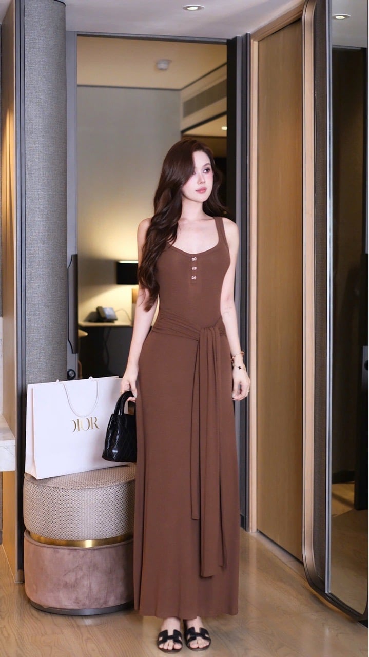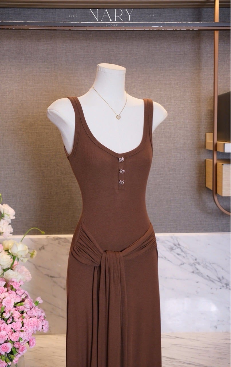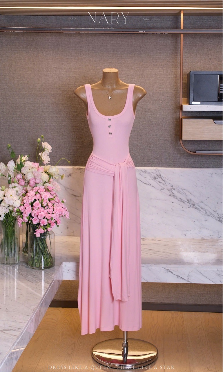 Đầm Dài Cột Eo Đính Nơ