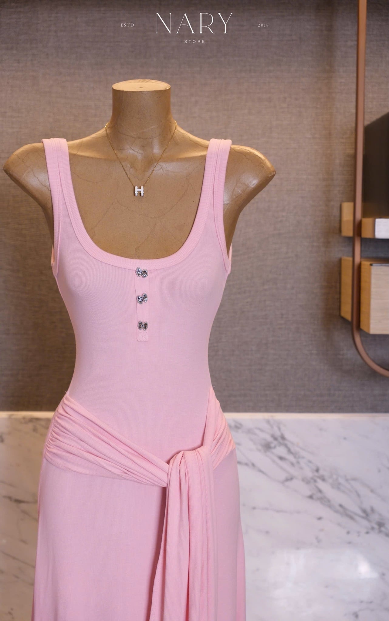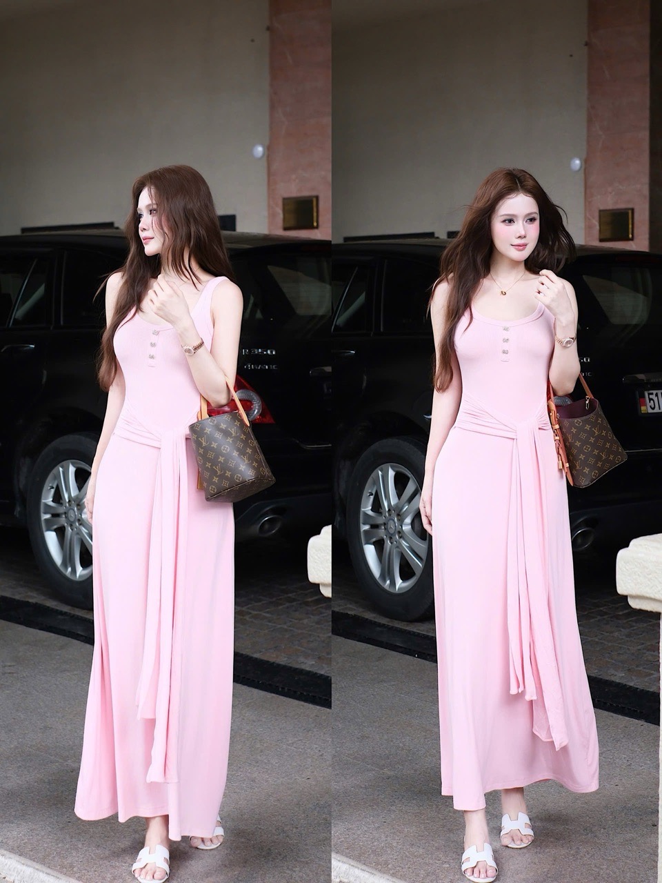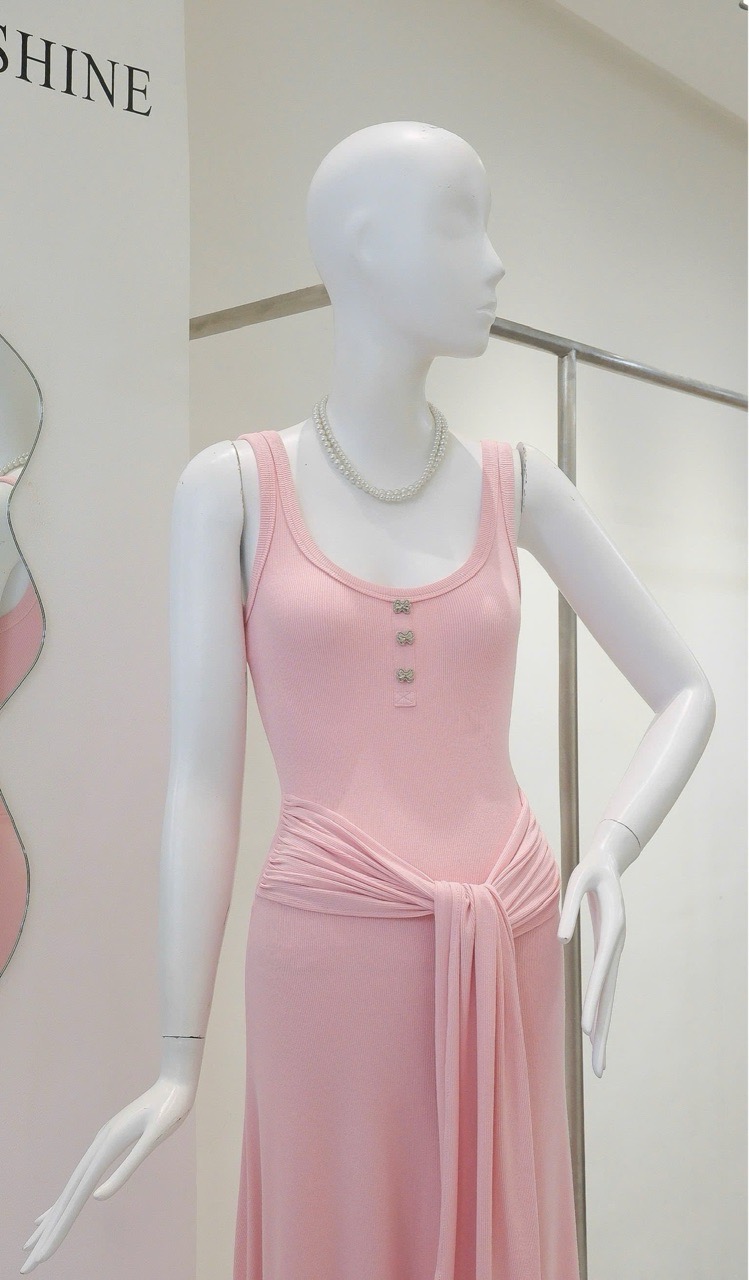 Đầm Dài Cột Eo Đính Nơ