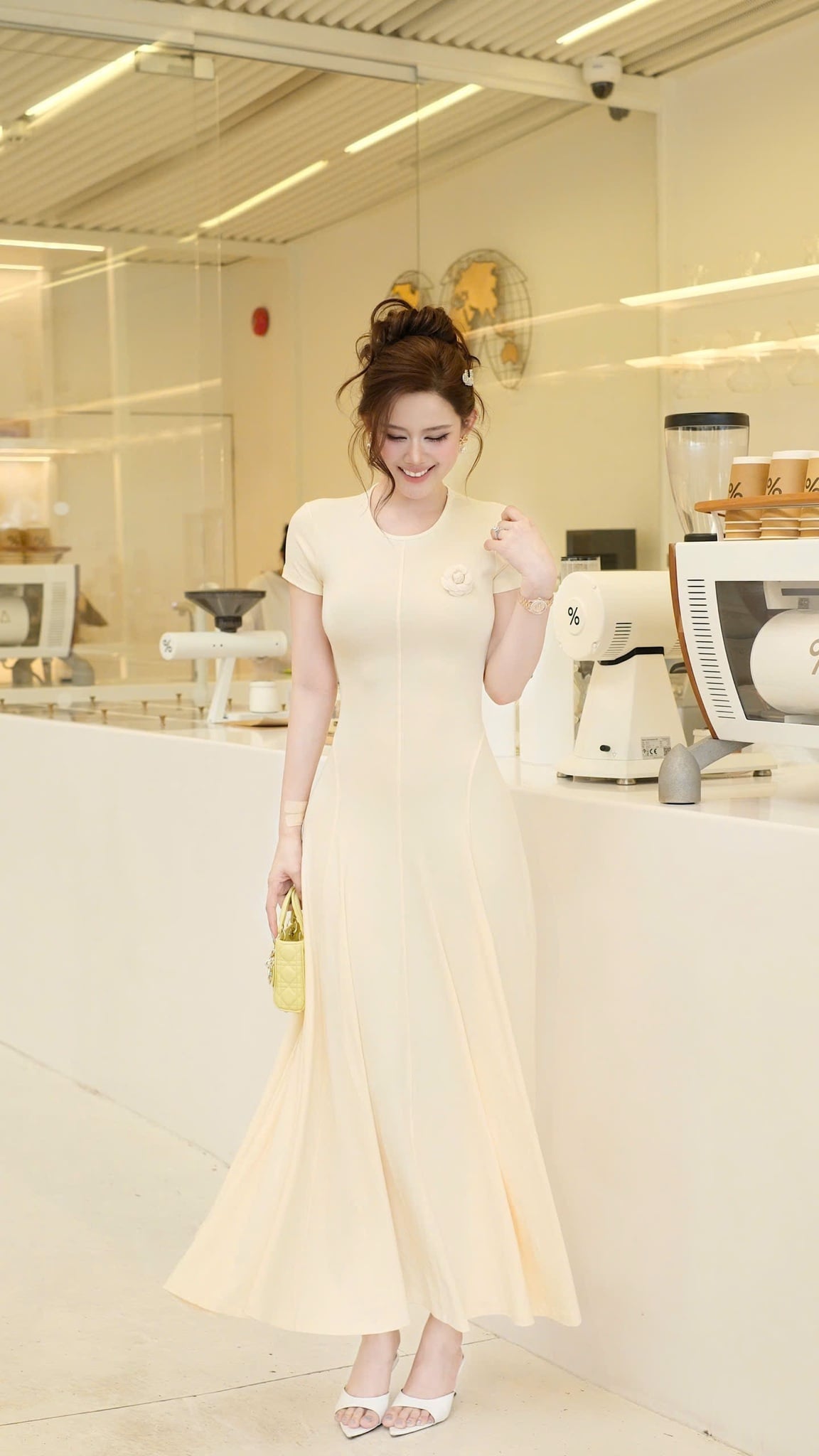 Đầm Thun Trơn Kèm Hoa