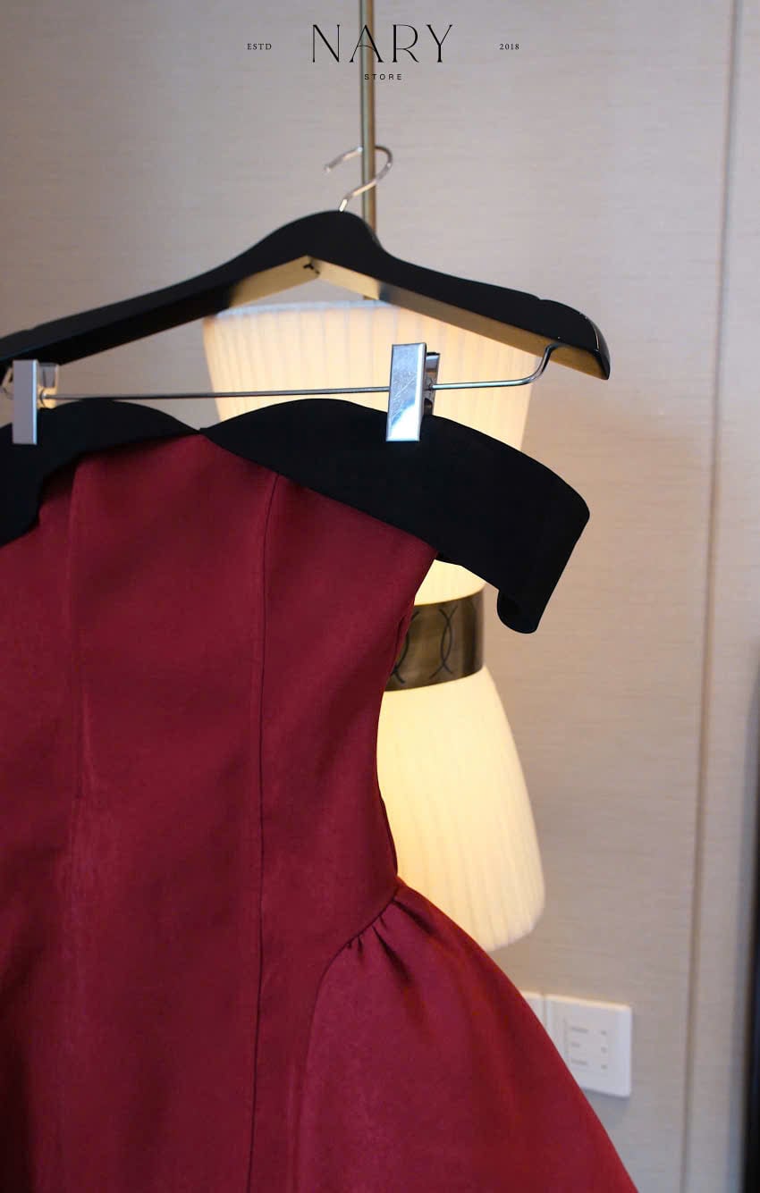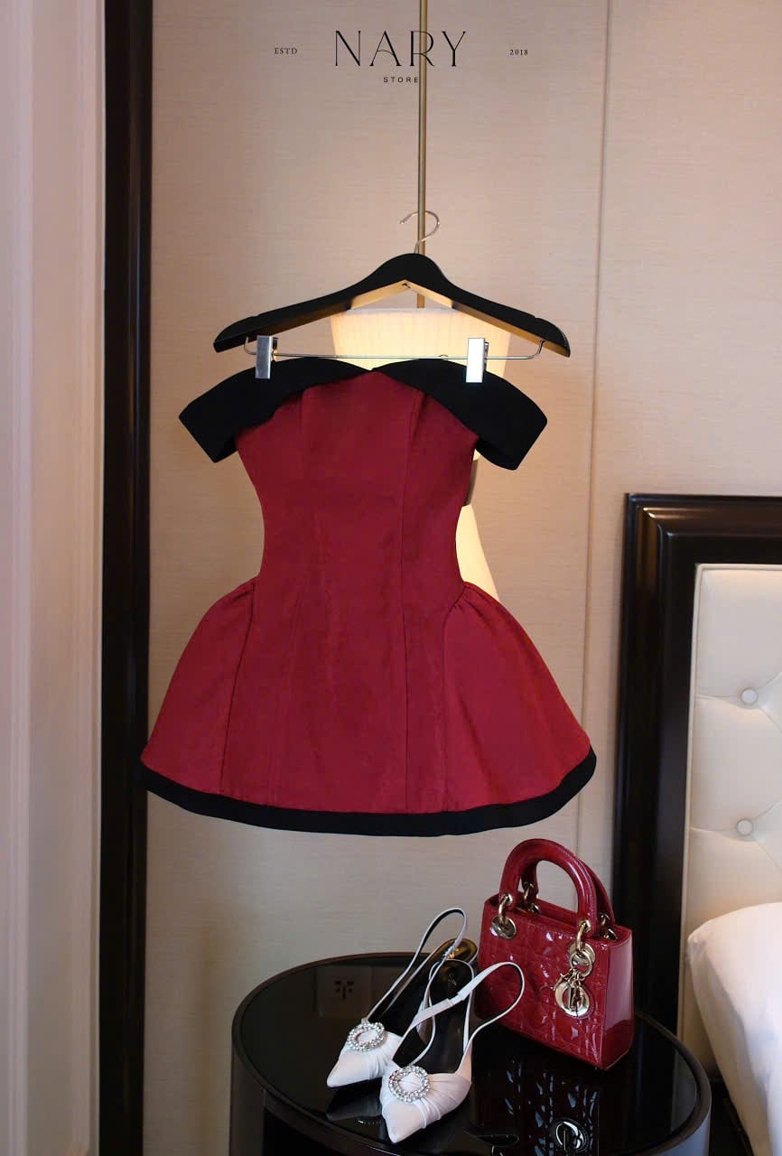 Đầm Xòe Bẹt Vai Phối Màu
