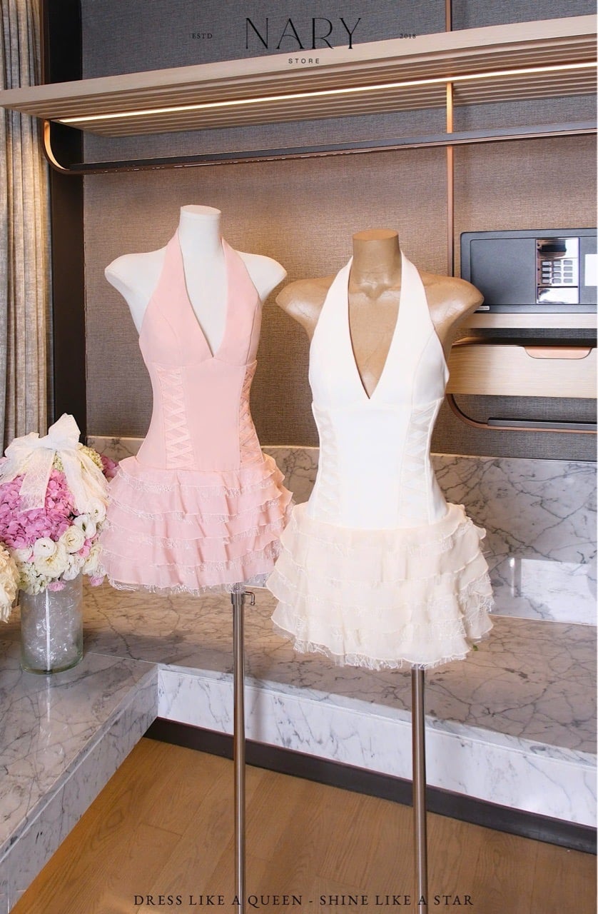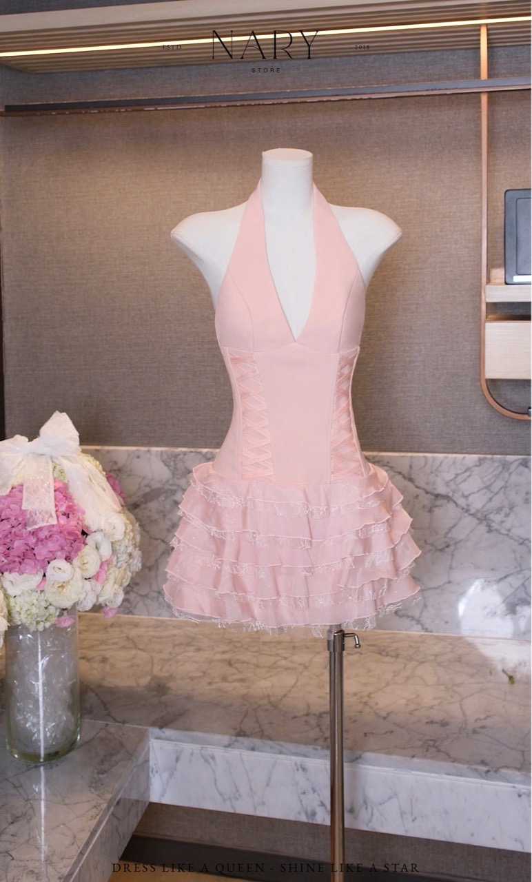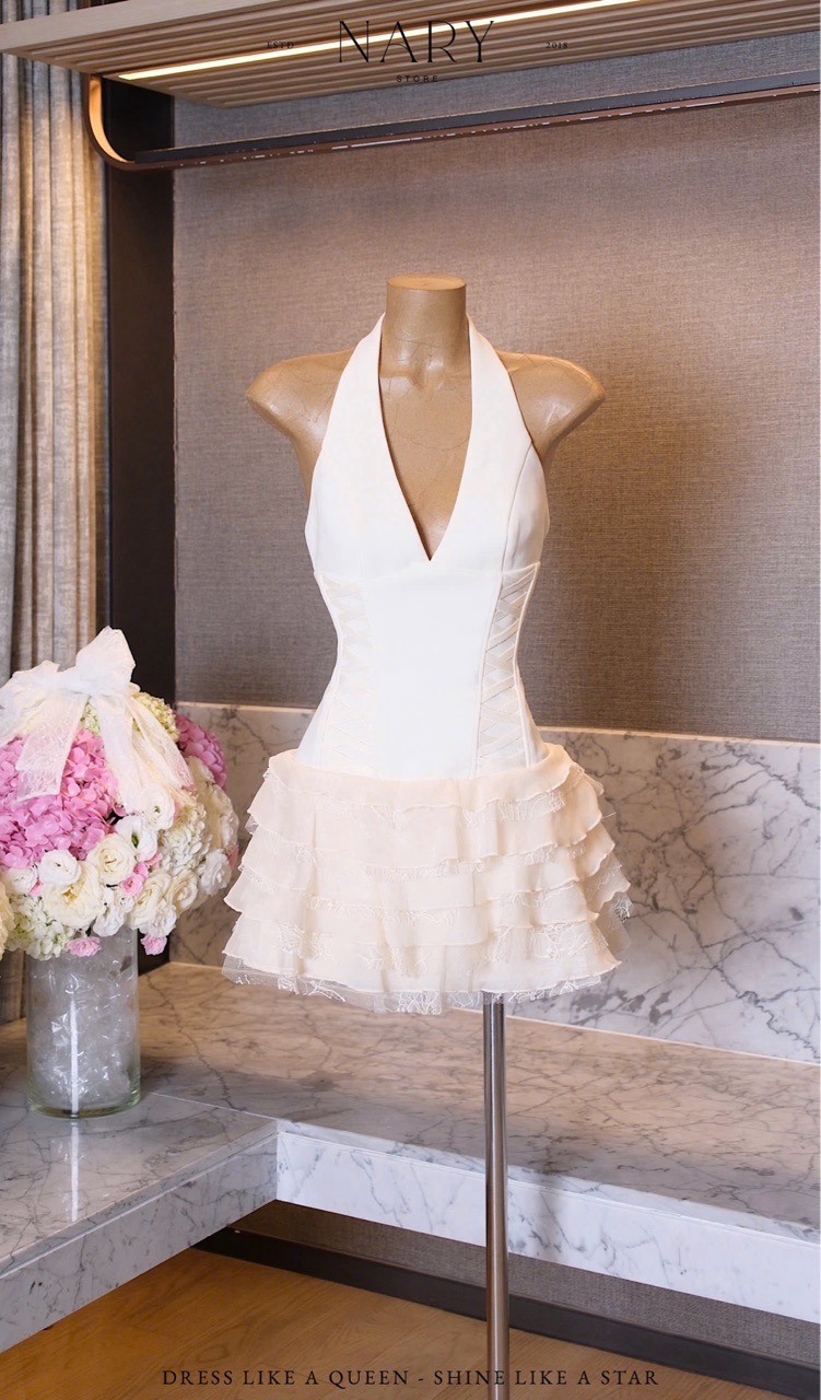 Đầm Yếm Chéo Dây Bèo Tầng