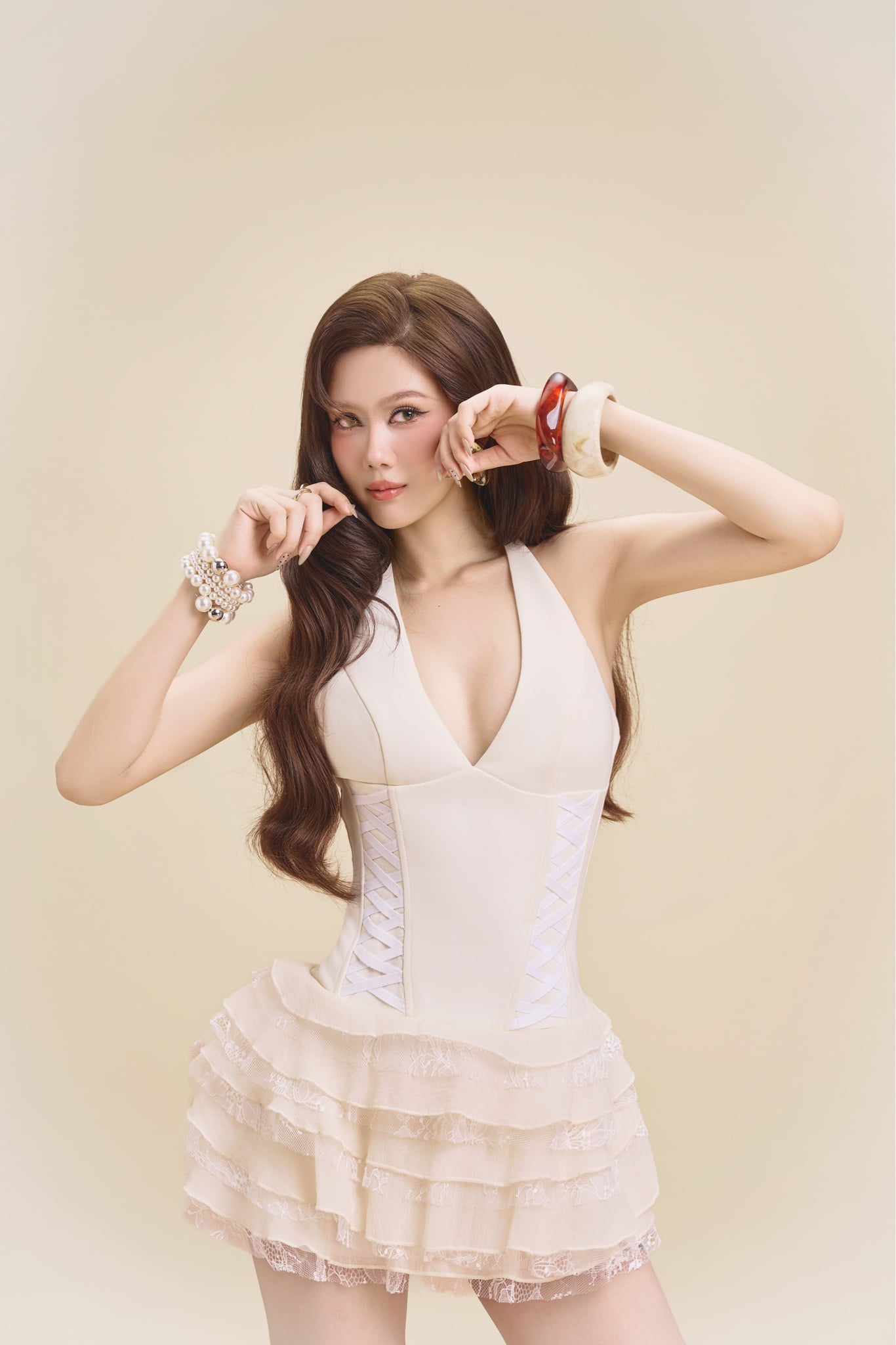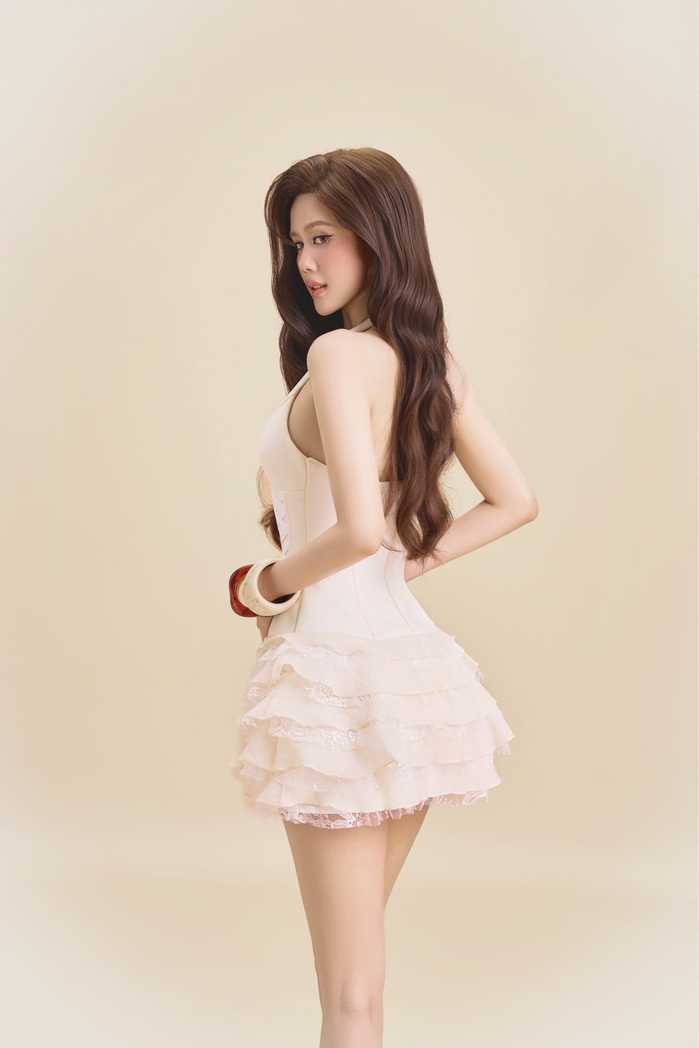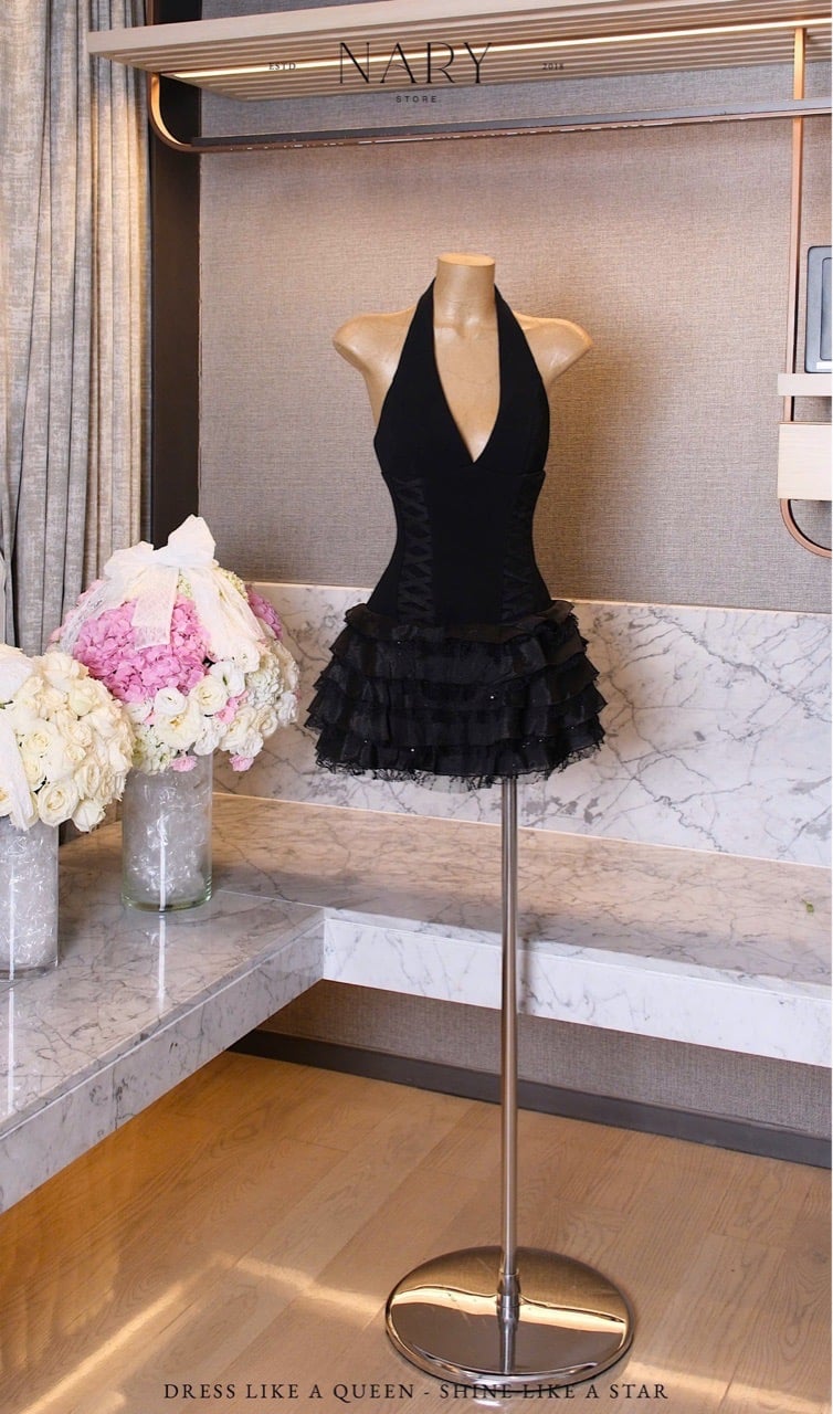 Đầm Yếm Chéo Dây Bèo Tầng
